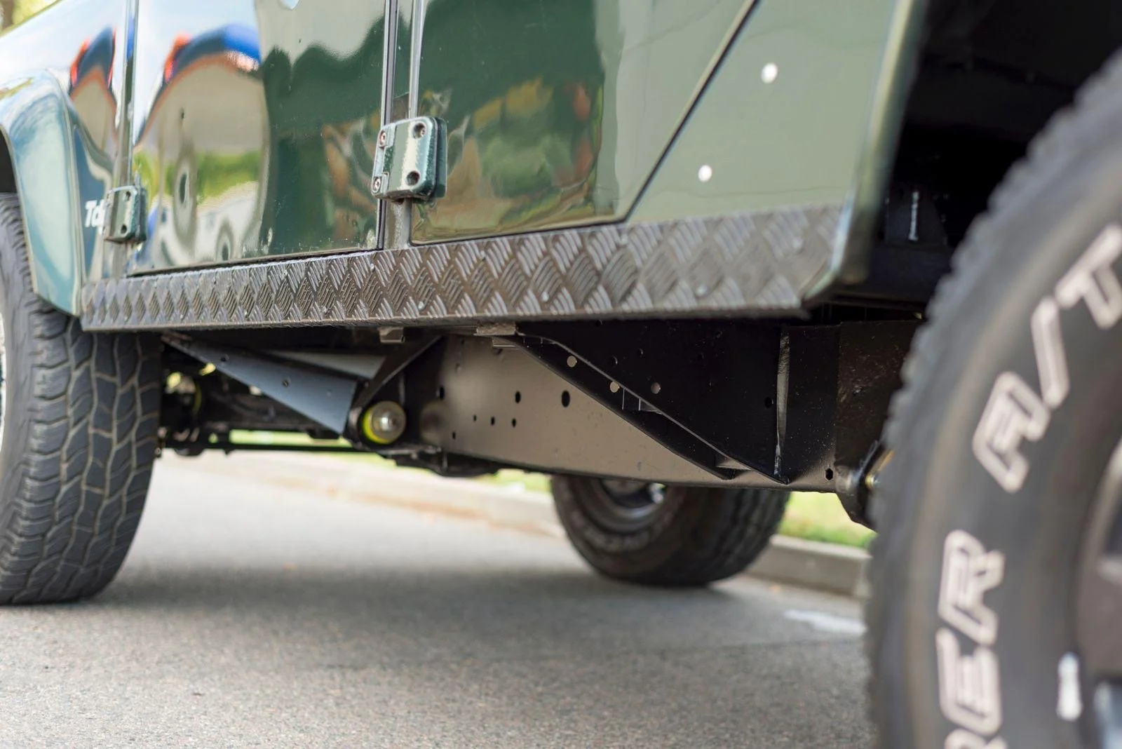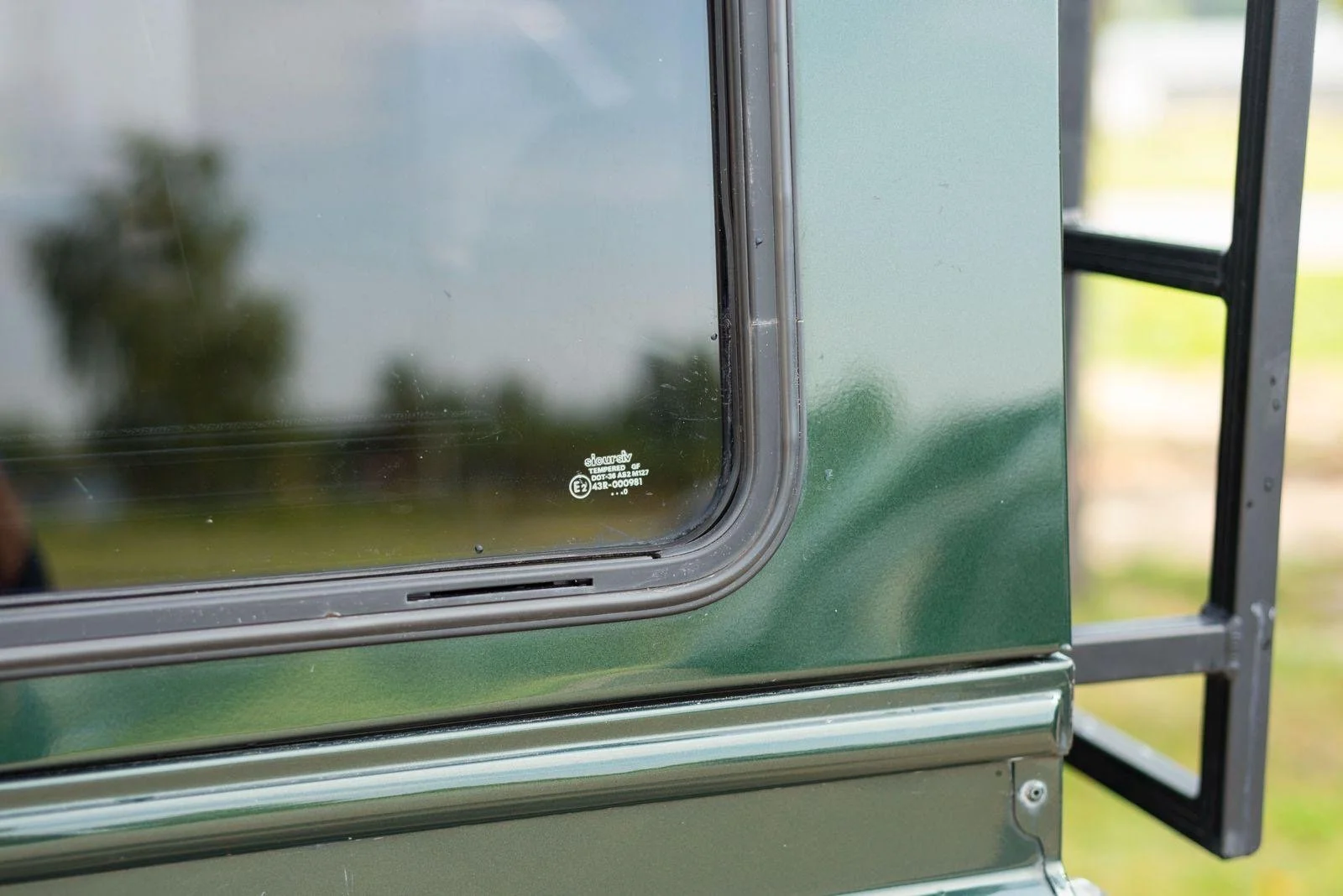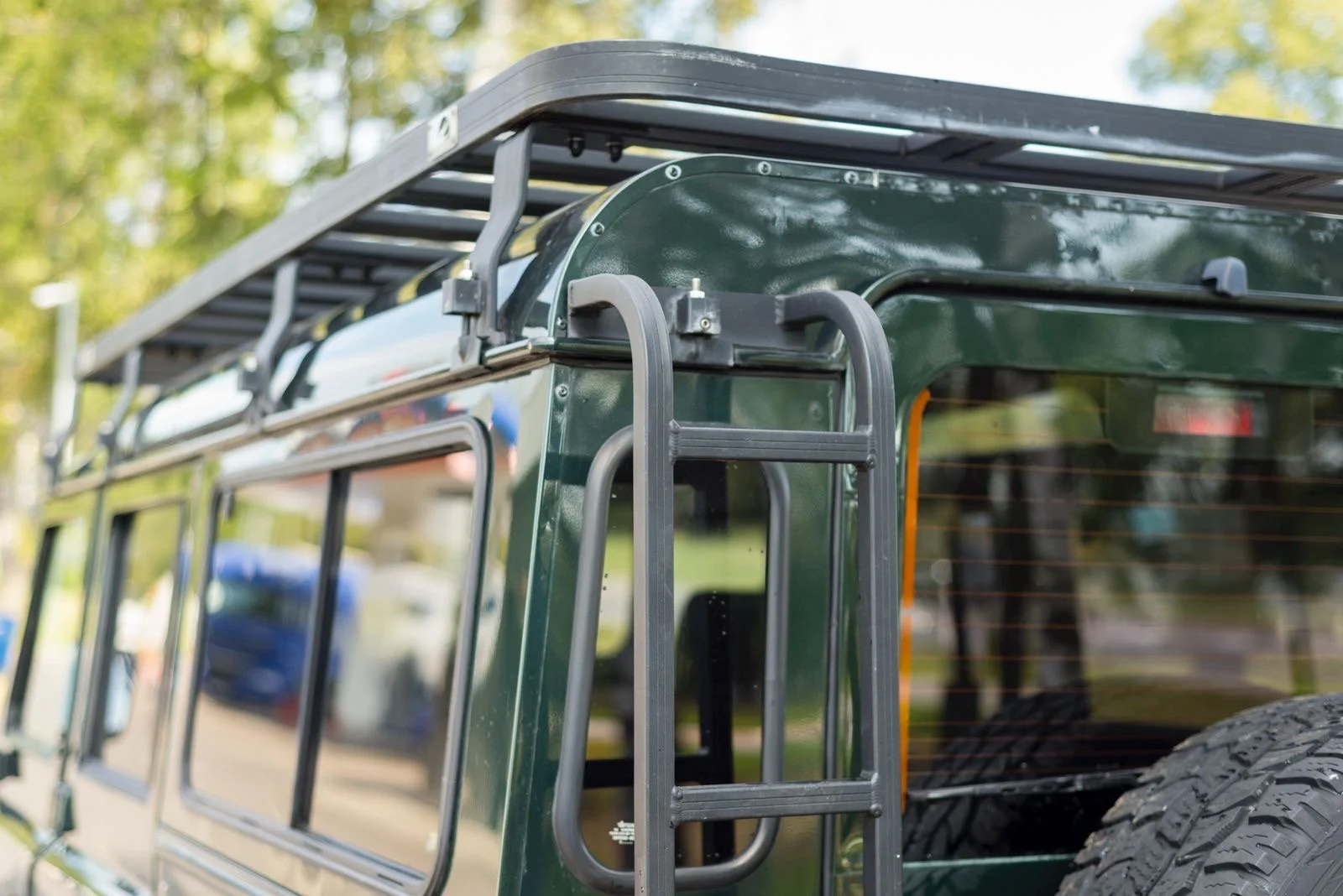 The aluminum body is in very great shape, refinished in the sought after Land Rover color, British Racing Green with cosmetic upgrades such as a rear ladder, Roof Rack, and more!