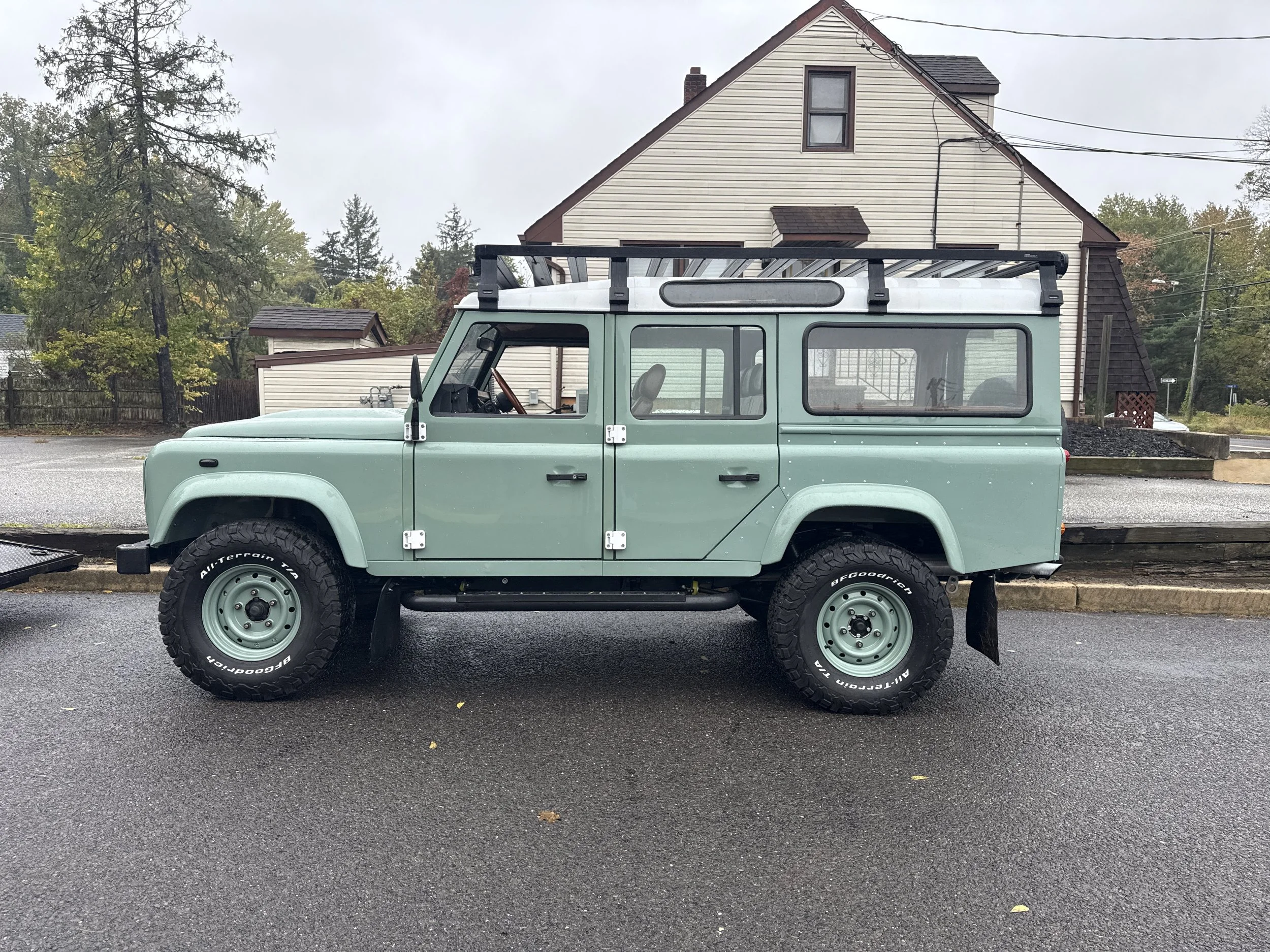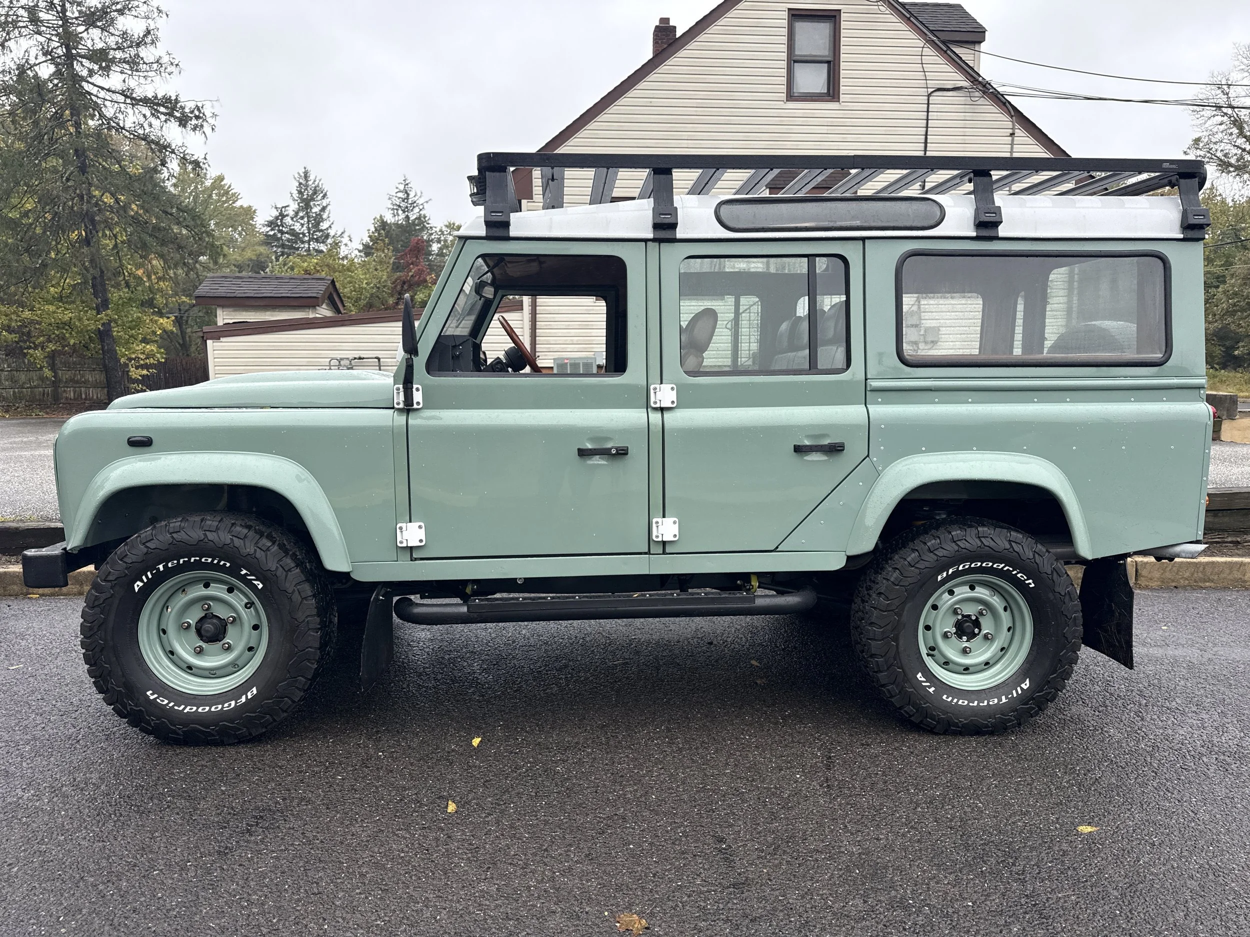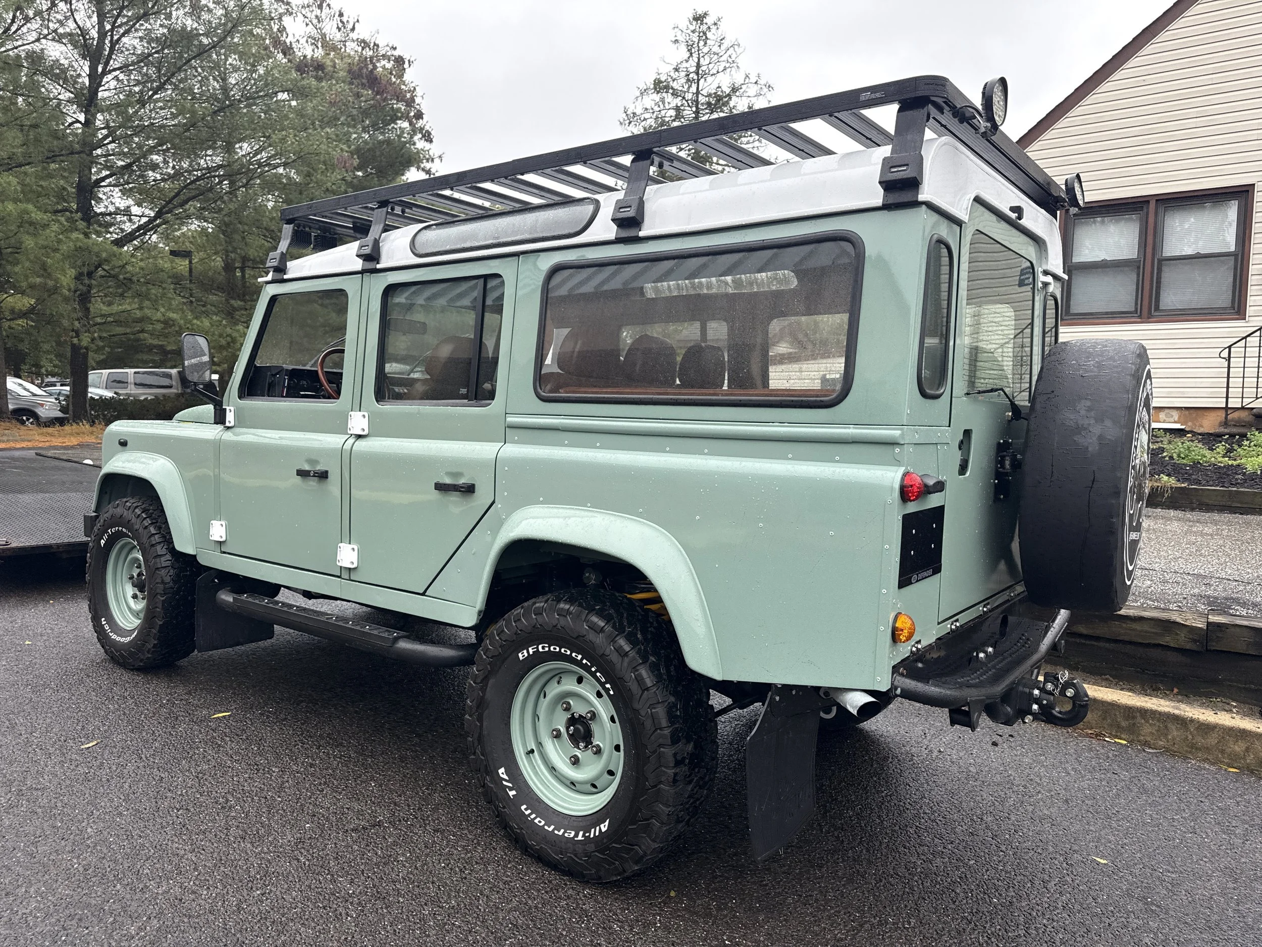 This Land Rover Defender 110 was imported into the United States by The Alpine Element, and underwent a very extensive restoration. This Defender was repainted in Grassmere Green, and fitted with matching steel wheels and appropriate tires, similar to the Heritage Edition Defenders, which are highly desirable Defenders. This Defender also features chestnut brown leather, an air conditioning unit, power windows, power locks, back up camera, bluetooth audio, and more!