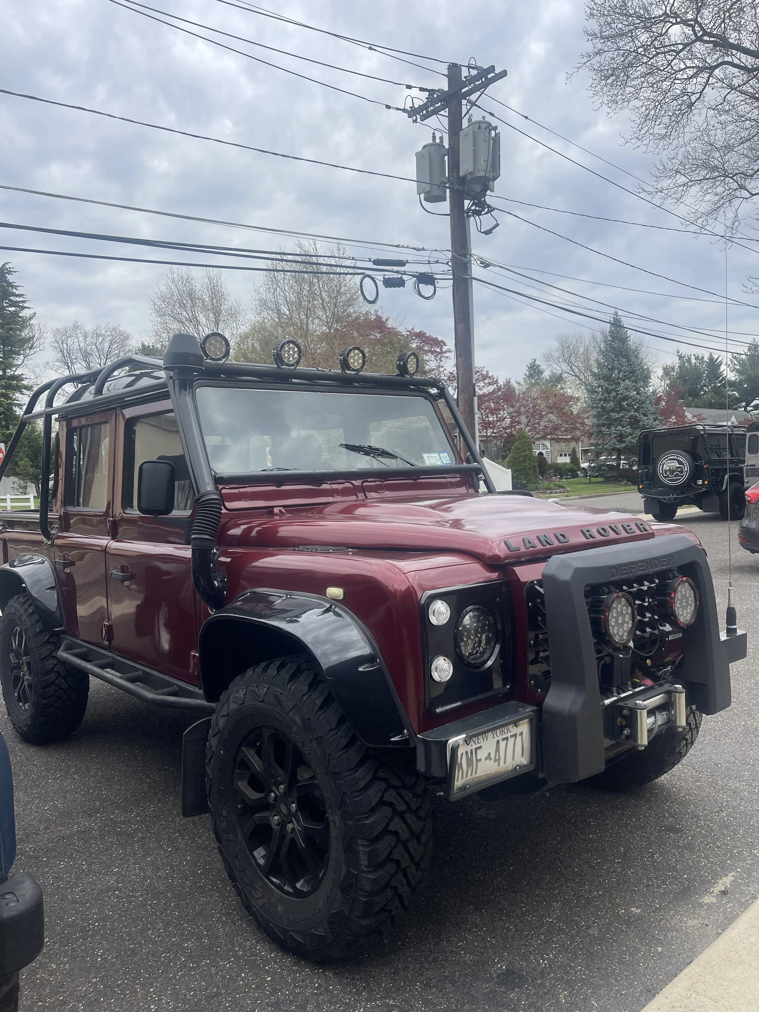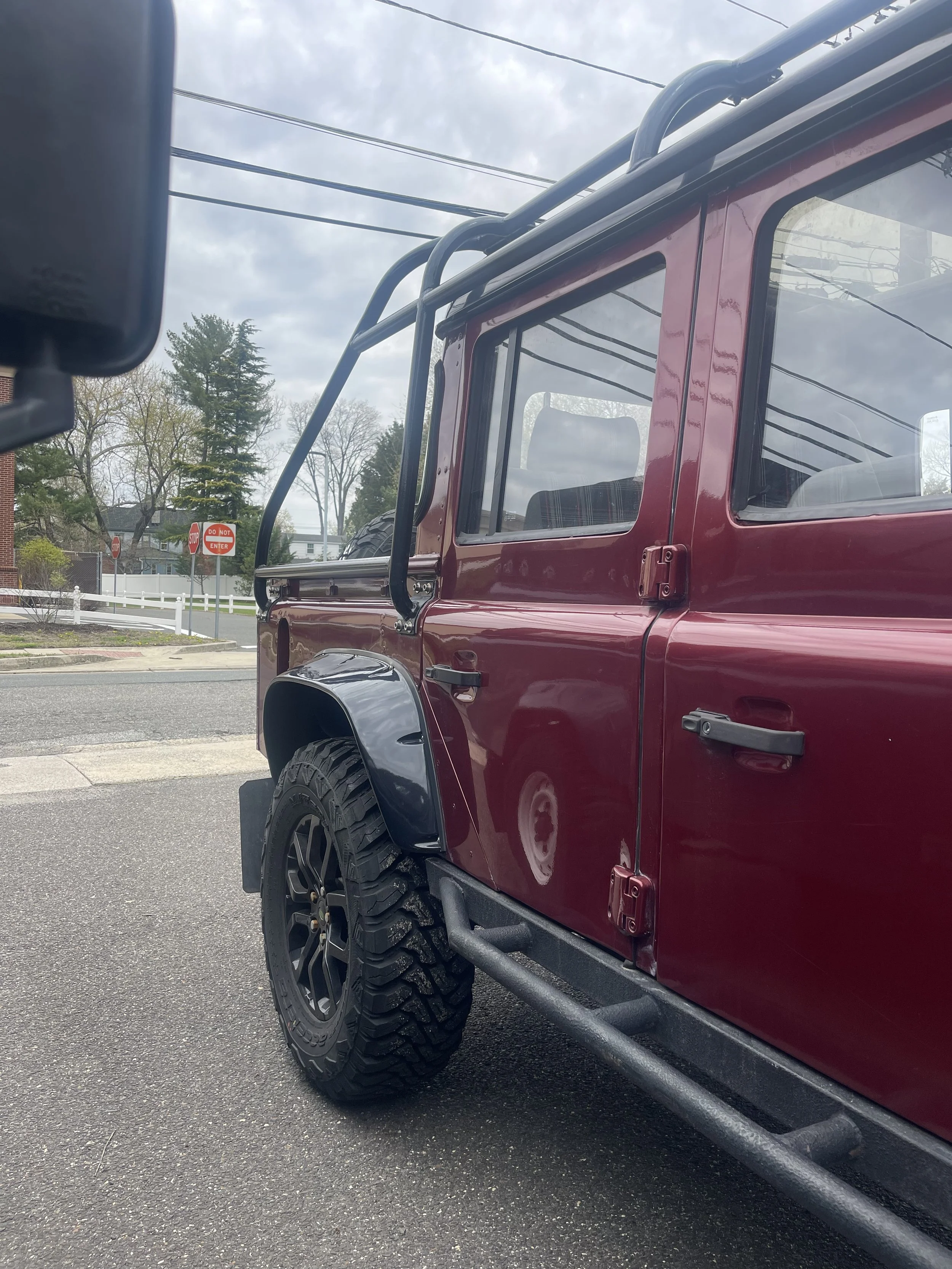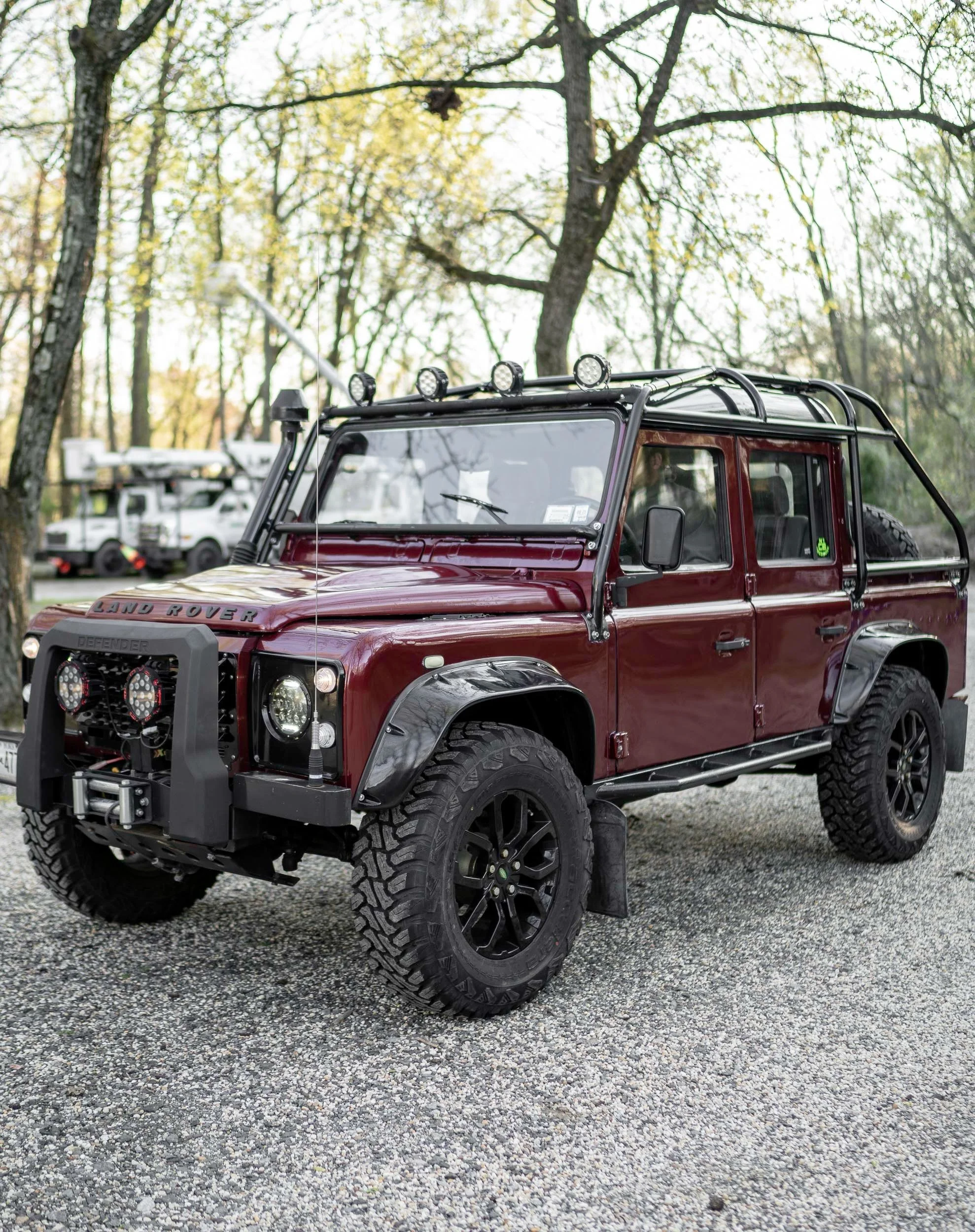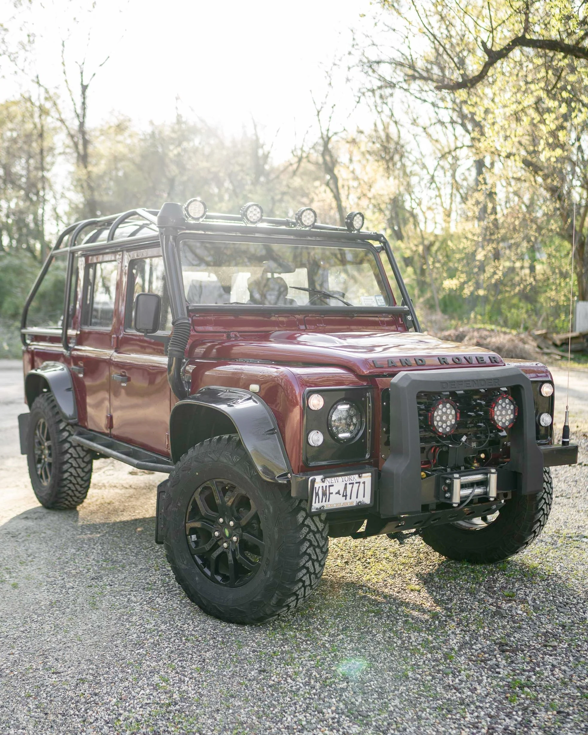 This Land Rover Defender 110 was imported into the United States by Alpine Element. This Defender underwent a restoration in the past under previous ownership and was upgraded with off road capability in mind. The Defender has been repainted in Burgundy and aftermarket wheels and upgraded suspension components.