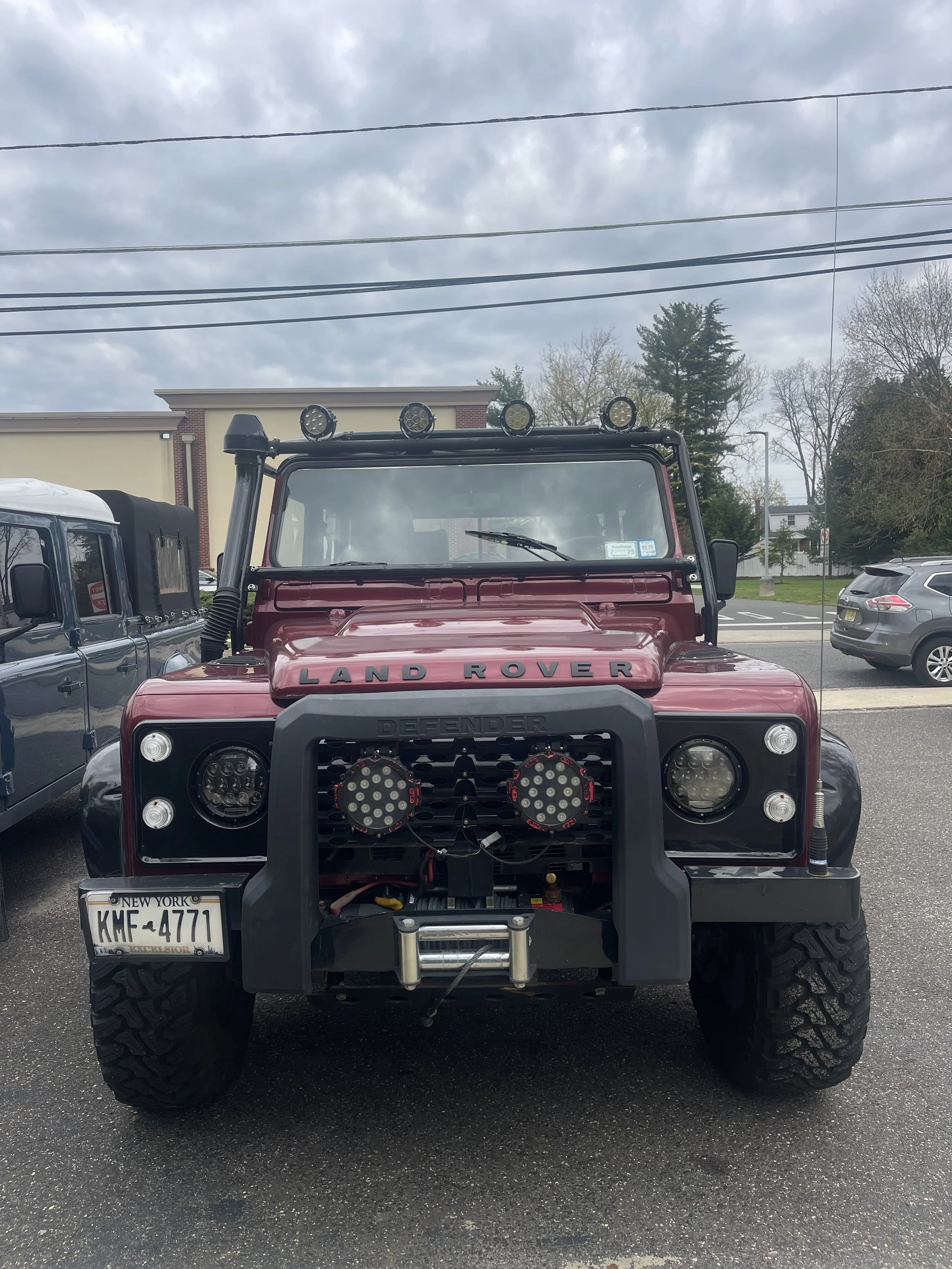The aluminum body was taken apart and repainted in maroon. An aftermarket front bar was added along with a heavy duty winch as well and an aftermarket skid plate. We also added a Puma hood along with an aftermarket front grill. A mild lift kit was installed as well to help with off road capability as well as off road tires.