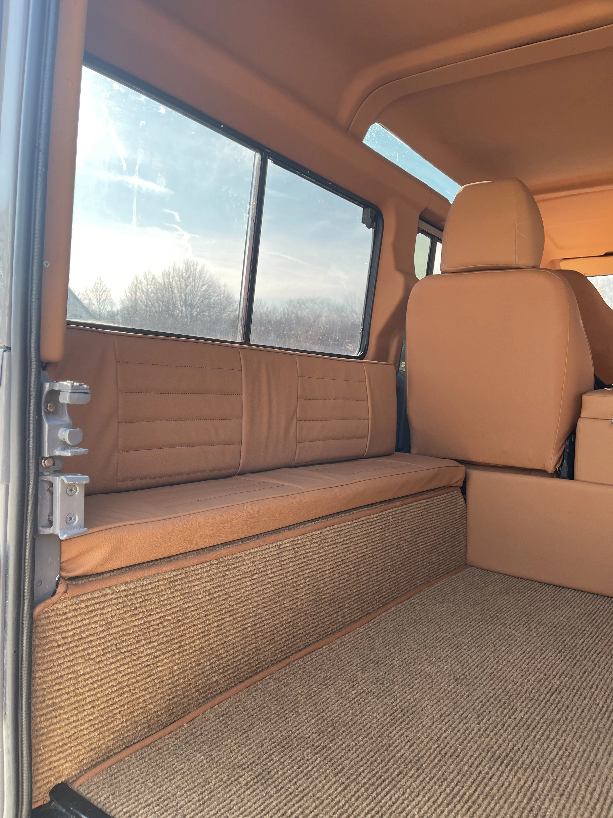 This Land Rover Defender is a very well done Defender and looks absolutely amazing, and has a very tasteful modern upgraded look to it. Power comes from a fresh 300 TDI engine and R380 transmission. The interior is very well done in saddle brown leather interior.